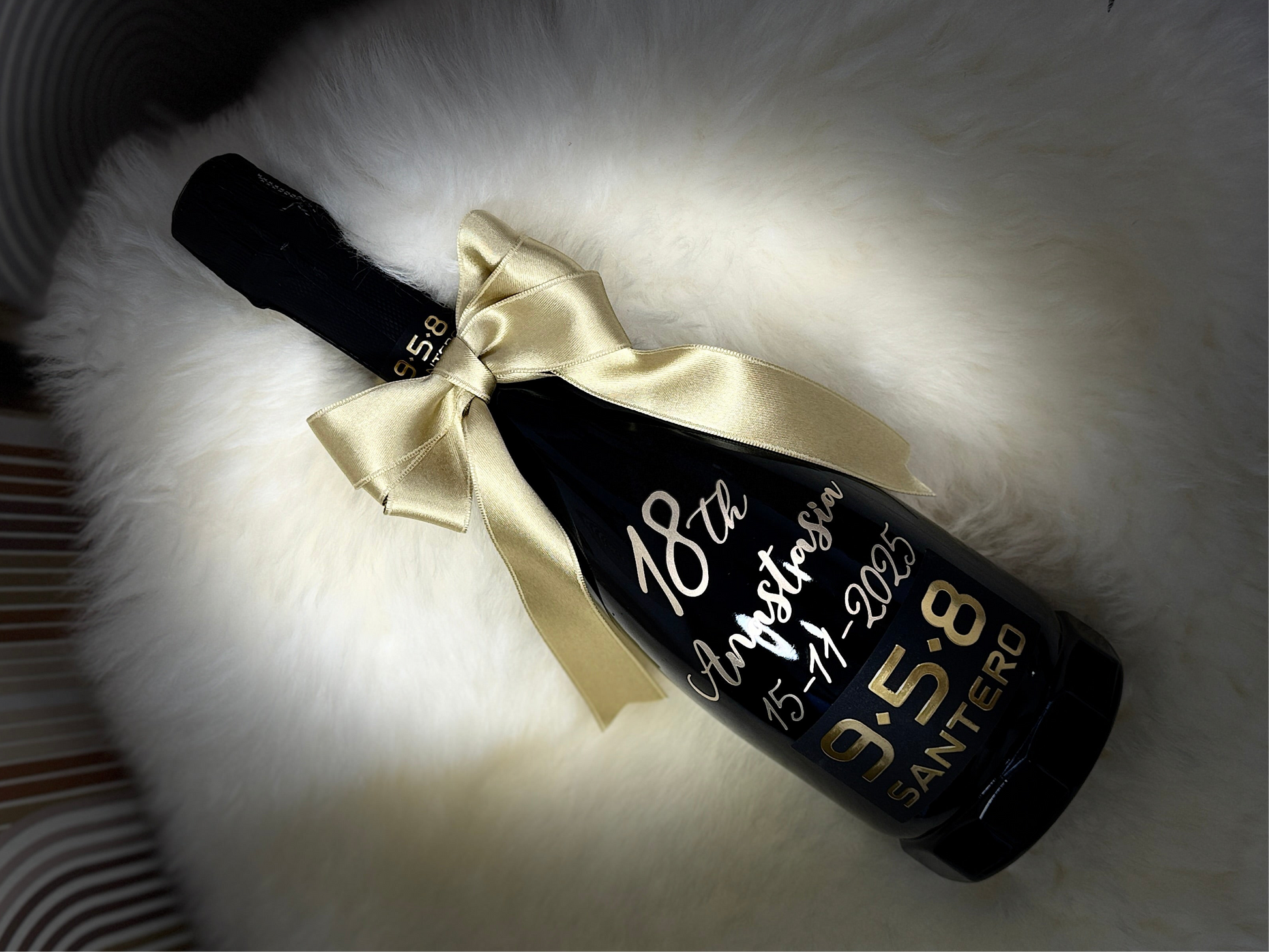 Bottiglia Santero personalizzata per il taglio della torta.